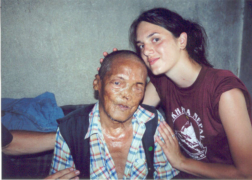 Daughter, Keisha with a leper in Nepal, Summer, 2003