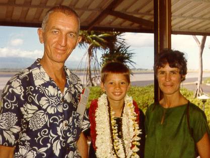 Shawn with Maui parents, 1980